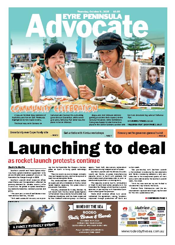 Eyre Peninsula Advocate Cleve – 9th October 2025 Subscribe or Login to see the rest of the content. Username Password * Remember Me Forgot Password News Charli leads the way for Tigers 10/10/2025 Up and coming Western United netballer Charli Cox capped a dominant season in Junior A by taking home the club best and fairest, ahead... Farm Beach whiting spotted 10/10/2025 With the long weekend now behind us it was great to see plenty of people getting out there to catch a fish after a... Back-to-back best and fairest for Binsted 10/10/2025 Western United player/coach Jacinta Binsted made it back-to-back best and fairests in just her second season at the Tigers, as her netball comeback continues...