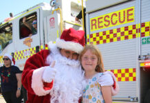 Santa visits on fire truck