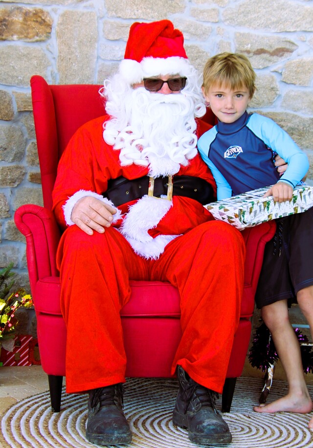 Father Christmas arrived at the Lock Christmas Tree on a Country Fire Service truck, with helpers Indi Morton and Rosie Bowey on board.