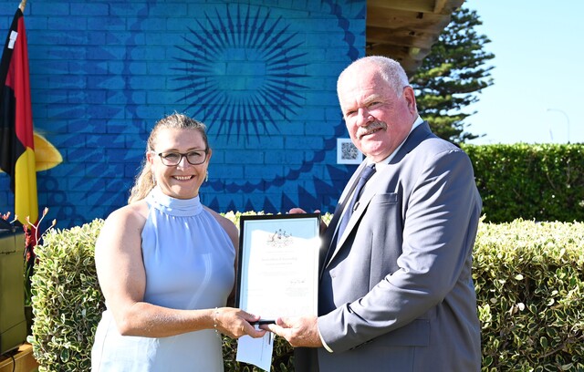 Ms Kilgour and Mr Orr received their citizenship certificates, and a Kangaroo Paw plant from the council.