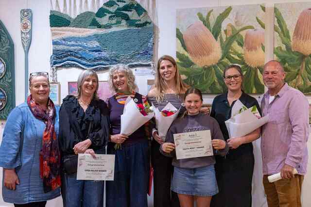 Award winners Ali Hein, Donna Legovini, judges Cait Wait and Ella Boylan, Emmie Window, judge Bec Gosling and Patrick Cotton. (Supplied)