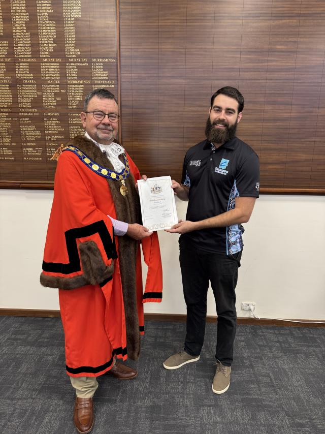 News New citizen at home in Ceduna 03/11/2025 FacebookTwitterEmail Ceduna mayor Ken Maynard with new Australian citizen Warren Carter. (Supplied) Luca Cetta Warren Carter sees his future in Ceduna, after he became the district’s newest Australian citizen last week. In a ceremony […] Subscribe or Login to see the rest of the content. Username Password * Remember Me Forgot Password