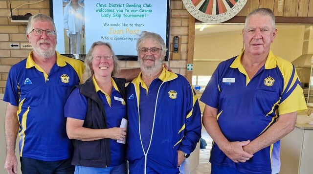 News Repaired club hosts tournament 09/11/2025 FacebookTwitterEmail Winning the Cleve Bowling Club's cosmo fours was the Cowell team of Rodney Atkinson, Darya White, Tony White and Roger Ramsey. (Supplied) Cleve District Bowling Club held its first tournament since a storm extensively damaged the clubroom in September 2024 The cosmo […] Subscribe or Login to see the rest of the content. Username Password * Remember Me Forgot Password