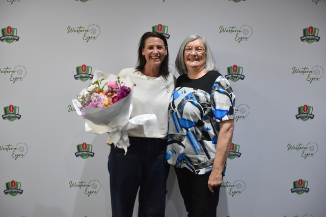 New Western Eyre Netball Association life member Cindy Best was presented her badge by fellow life member Jan Wheaton at last month's awards night. (Luca Cetta: 501585_01)