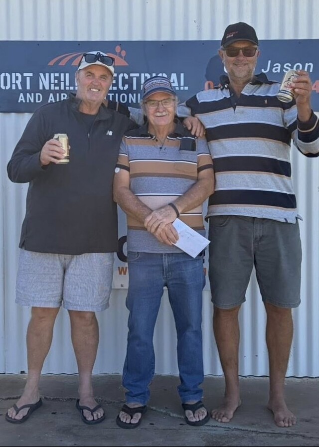 Jeremy Blair, Les Edwards and Gavin Rehn won the New Year’s Eve triples’ bowls. (Supplied)